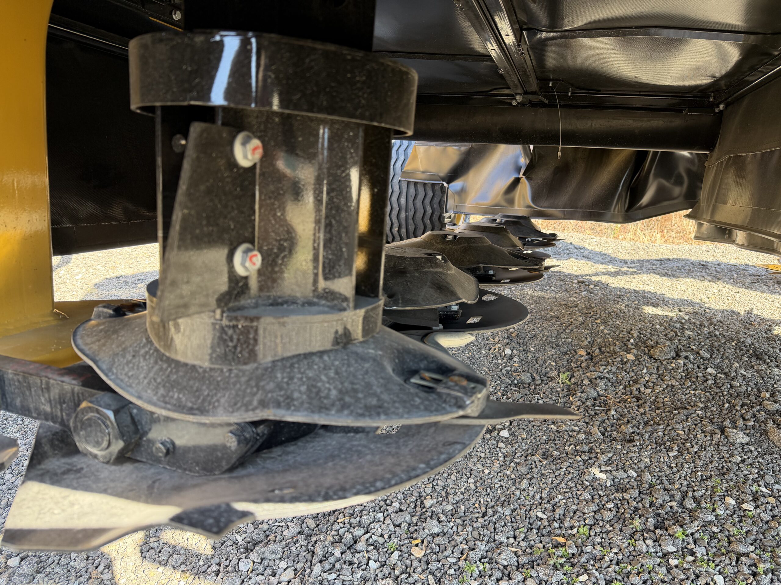 Operator comfort and machine longevity are ensured by the nitrogen-charged accumulator suspension system. This setup allows the two independent cutter bar units to flex and float over uneven ground contours, maintaining a consistent cut height while protecting the internal components from shock loads. With the 2-point Quick Hitch system, hooking up is a one-person job, getting you into the field faster when the hay is ready.
